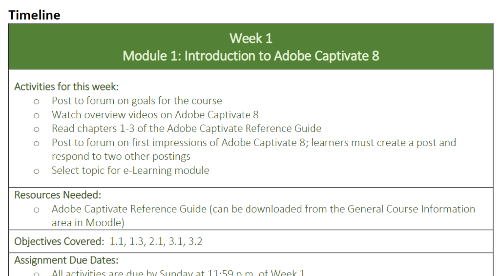 Examples of Instructional Design Work Completed for different organizations. Some of these are images or videos, since they were built for a Learning Management System.